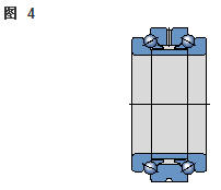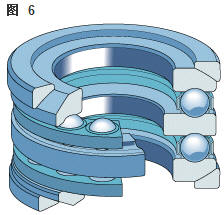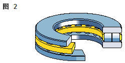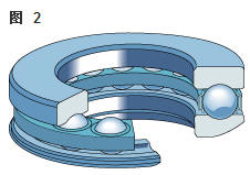 雙向角接觸推力球軸承 在雙向軸承的設(shè)計(jì)中(圖2),承載能力較高的上軸承與相反方向上的較小軸承結(jié)合,組成一個(gè)單元。這類軸承的高度低,除力矩負(fù)荷外也能承受雙向軸向負(fù)荷。 所以一個(gè)單一的軸承能用于支承相對(duì)靜止的旋轉(zhuǎn)機(jī)器部件。這些雙向軸承同樣也采用分離型設(shè)計(jì)。