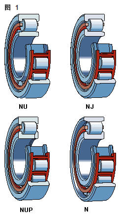 – 帶保持架的單列圓柱滾子軸承,主要為NU、NJ、NUP和N設(shè)計(jì)(圖1)